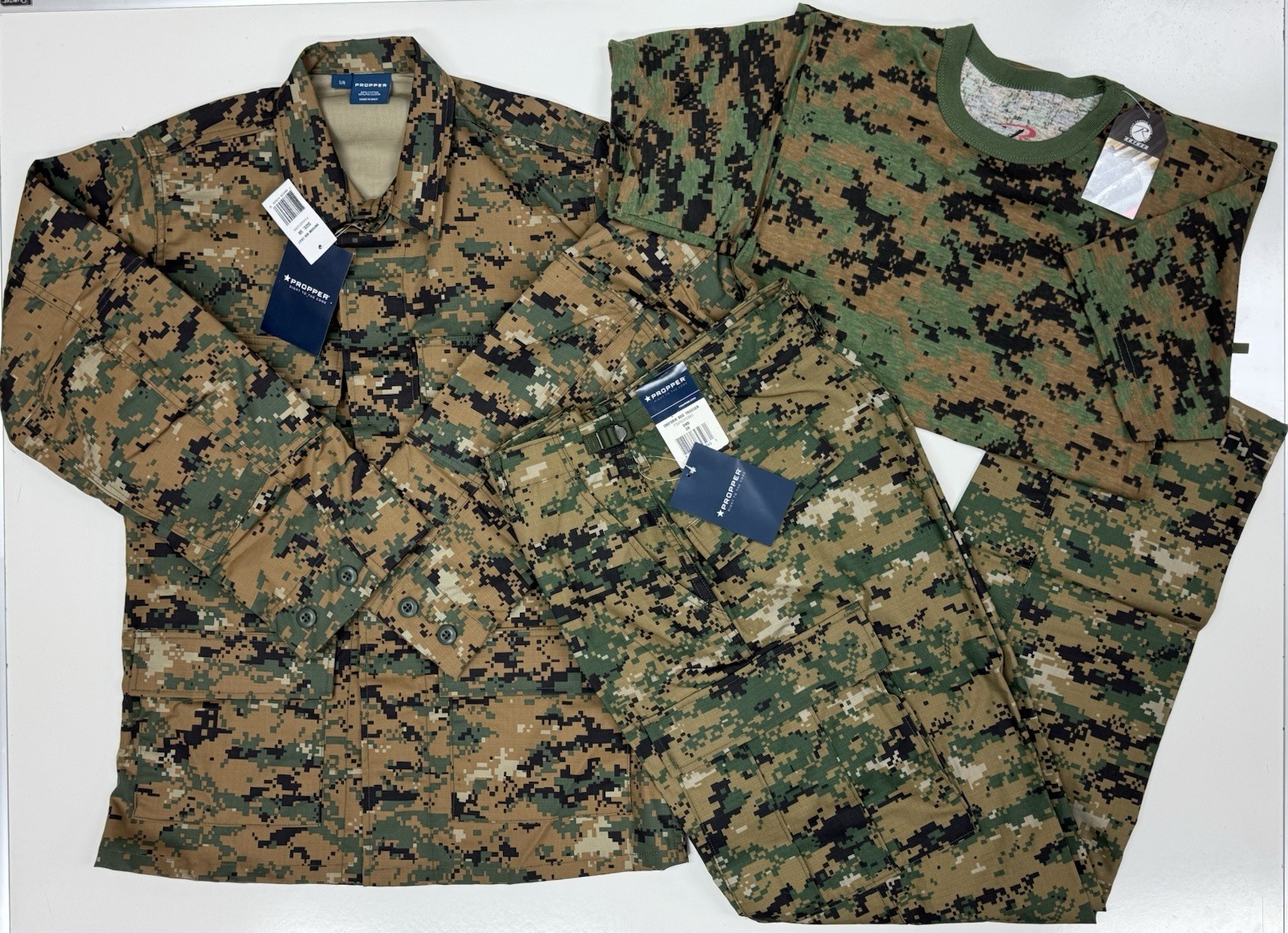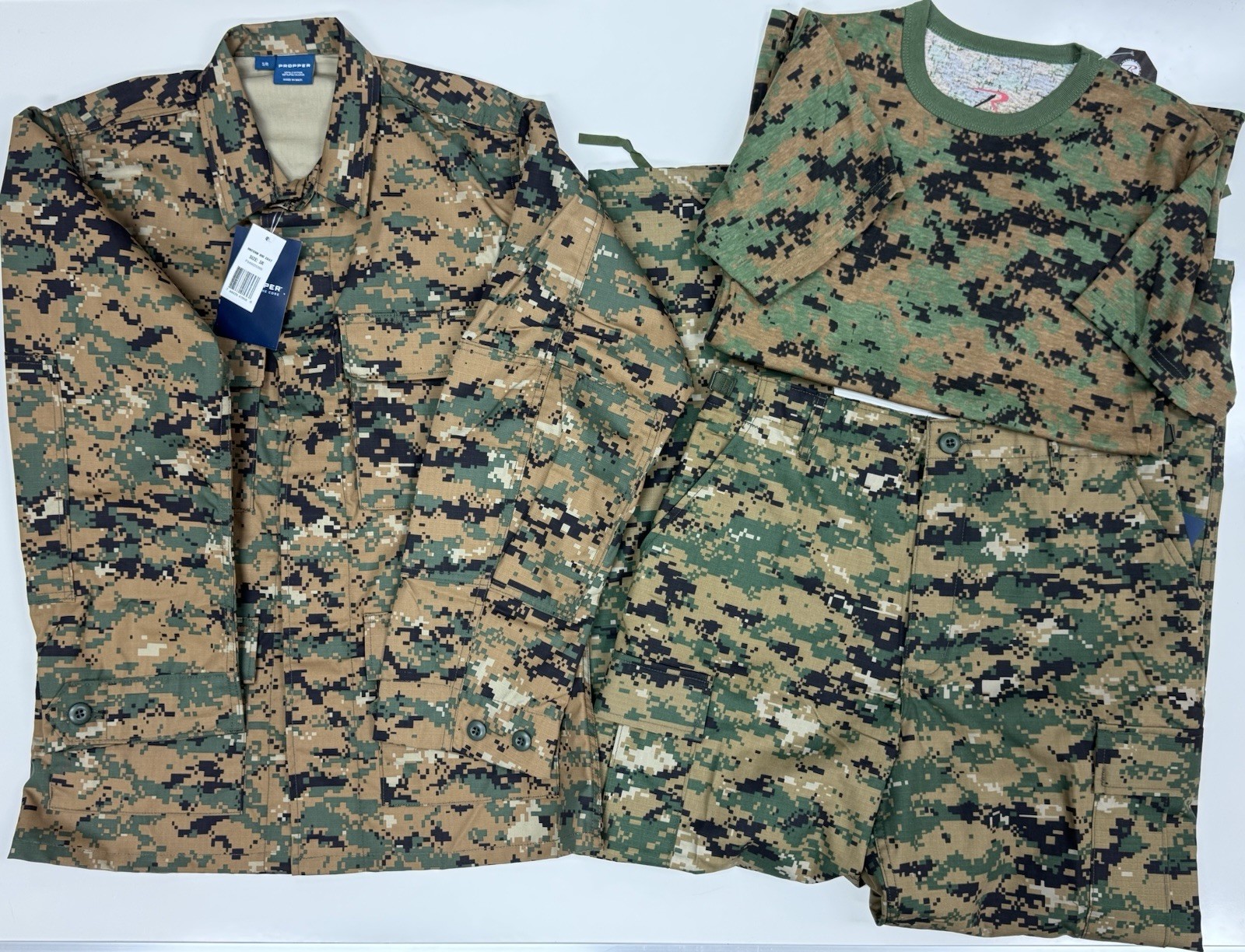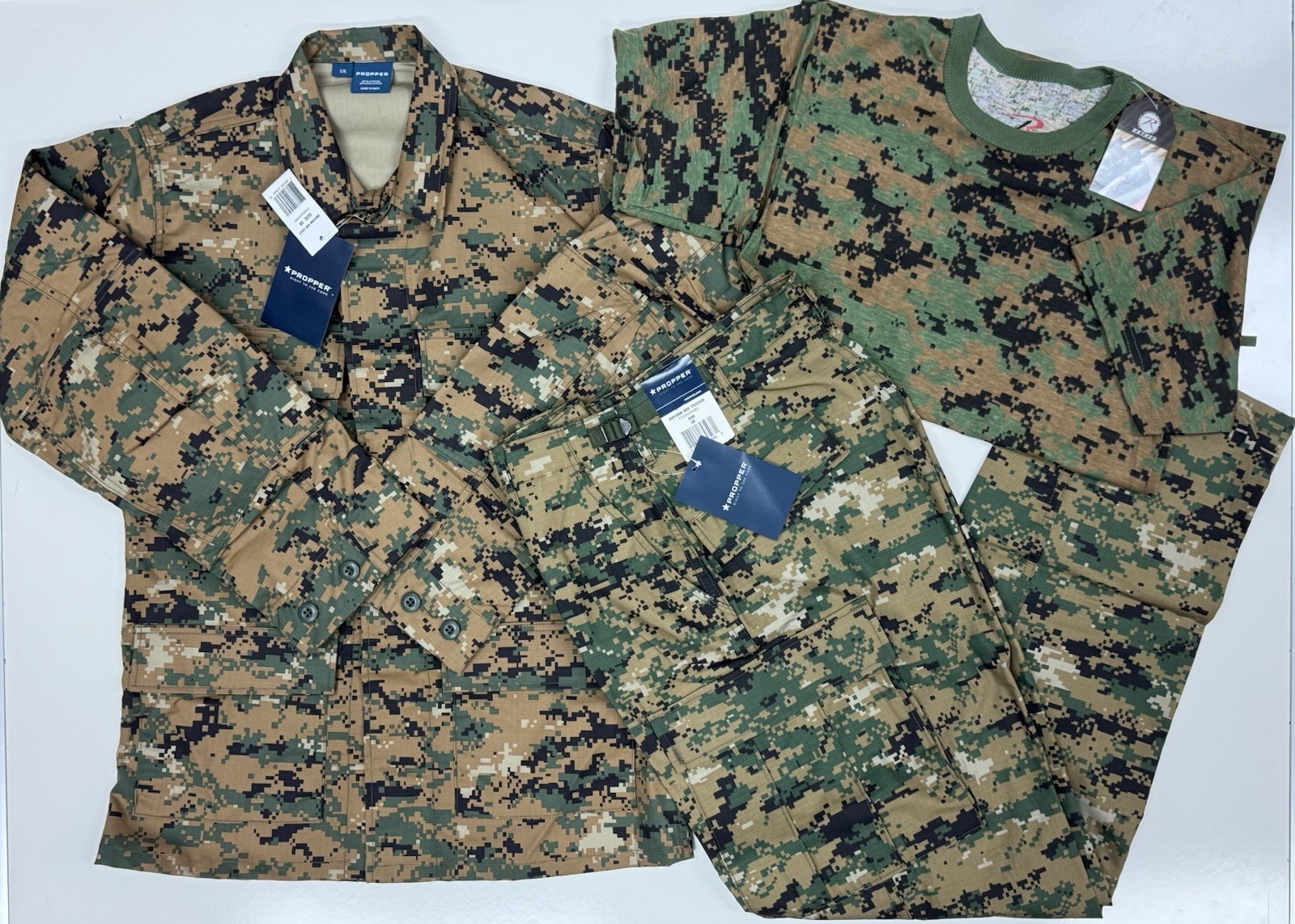 Woodland Digital BDU Tactical Military Uniform SHIRT, PANTS, T-SHIRT SET Size Small Regular