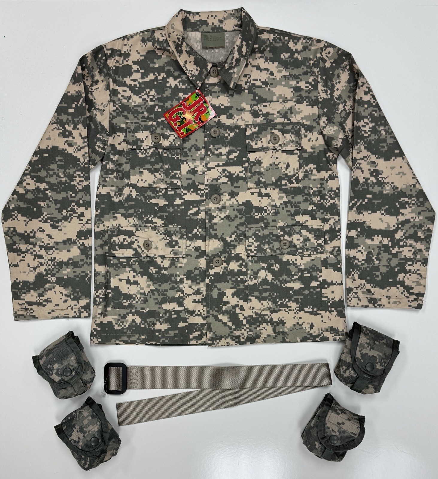 Six Piece Set Kid's ACU Camo BDU Shirt, Belt, 4 Pouches Set NEW