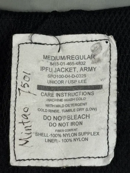 Condition: Used; Previously issued; show signs of mild to moderate use including discolorations, fading, scratches on hardware, small snags, and other minor imperfections in fabric, and/or dirt from field use. The Jacket has all functional zippers. Most Noticeable: The right arm sleeve has some discolorations and fading spots. These are light. Not sure if they will come out in the wash. This area is photographed on the listing. There may be other areas with minor imperfections that we have missed during our inspection. Please view all the photos carefully. Contact us if you have questions, or would like us to send more photos of a specific area.