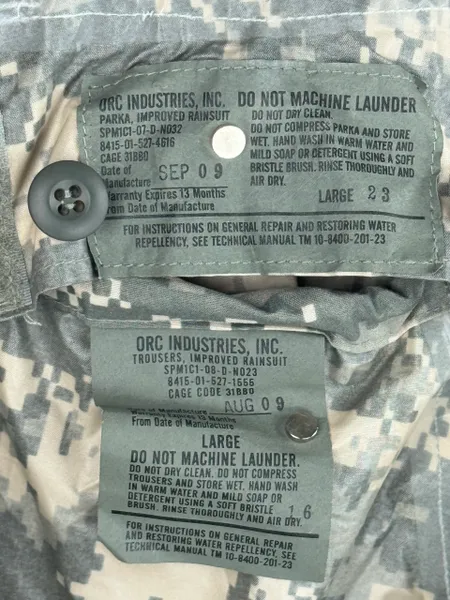 USGI ORC Ind UCP ACU Wet Weather Improved Rainsuit Parka & Pants 2PC SET Large EUC