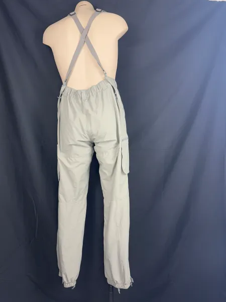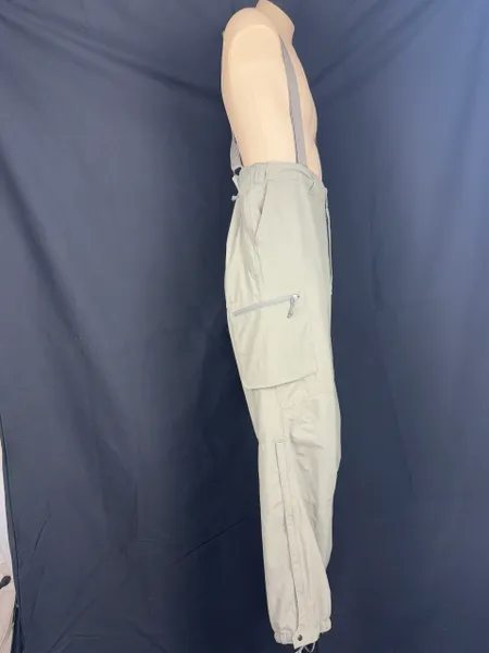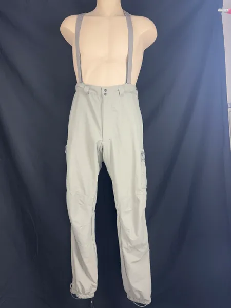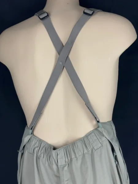 Condition: Excellent Used; Shows signs of prior use; No holes or tears. Has some fabric piling throughout. Has all working parts, including zippers, snaps, etc. Includes Suspenders. See photos on listing. Lots of photos provided, and we will be happy to send more upon request.