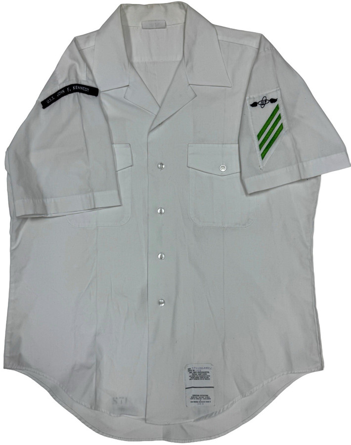 USGI Add to Cart USGI USN CPO Men's White Tropical Short Sleeve Uniform Shirt Sz Large USED MSRP: Was: Now: $11.99 USGI USN CPO Men's White Tropical Short Sleeve Uniform Shirt 2 Attached Patches - 1 on each sleeve (…