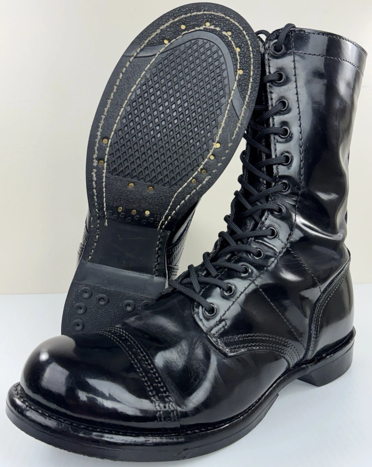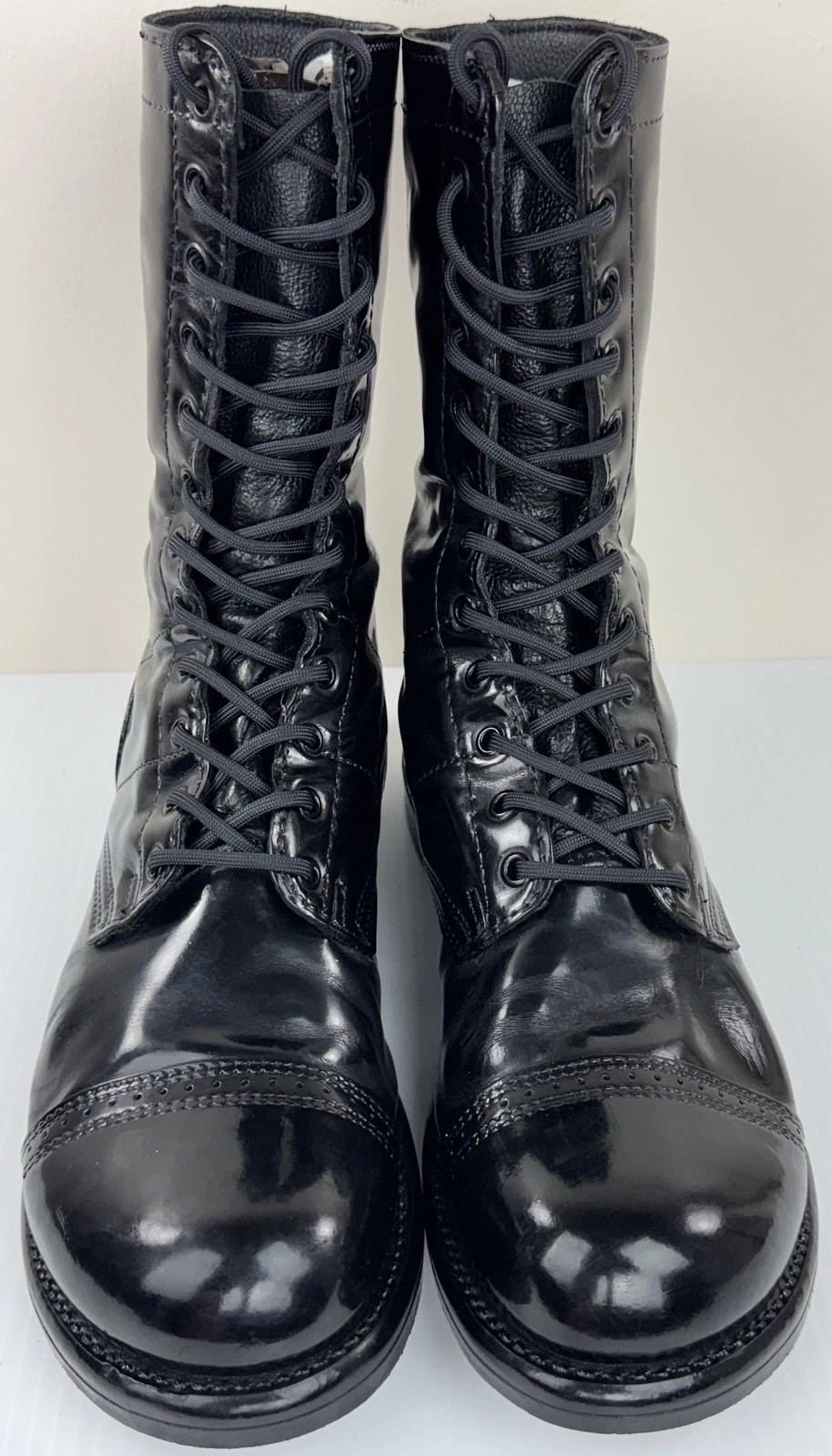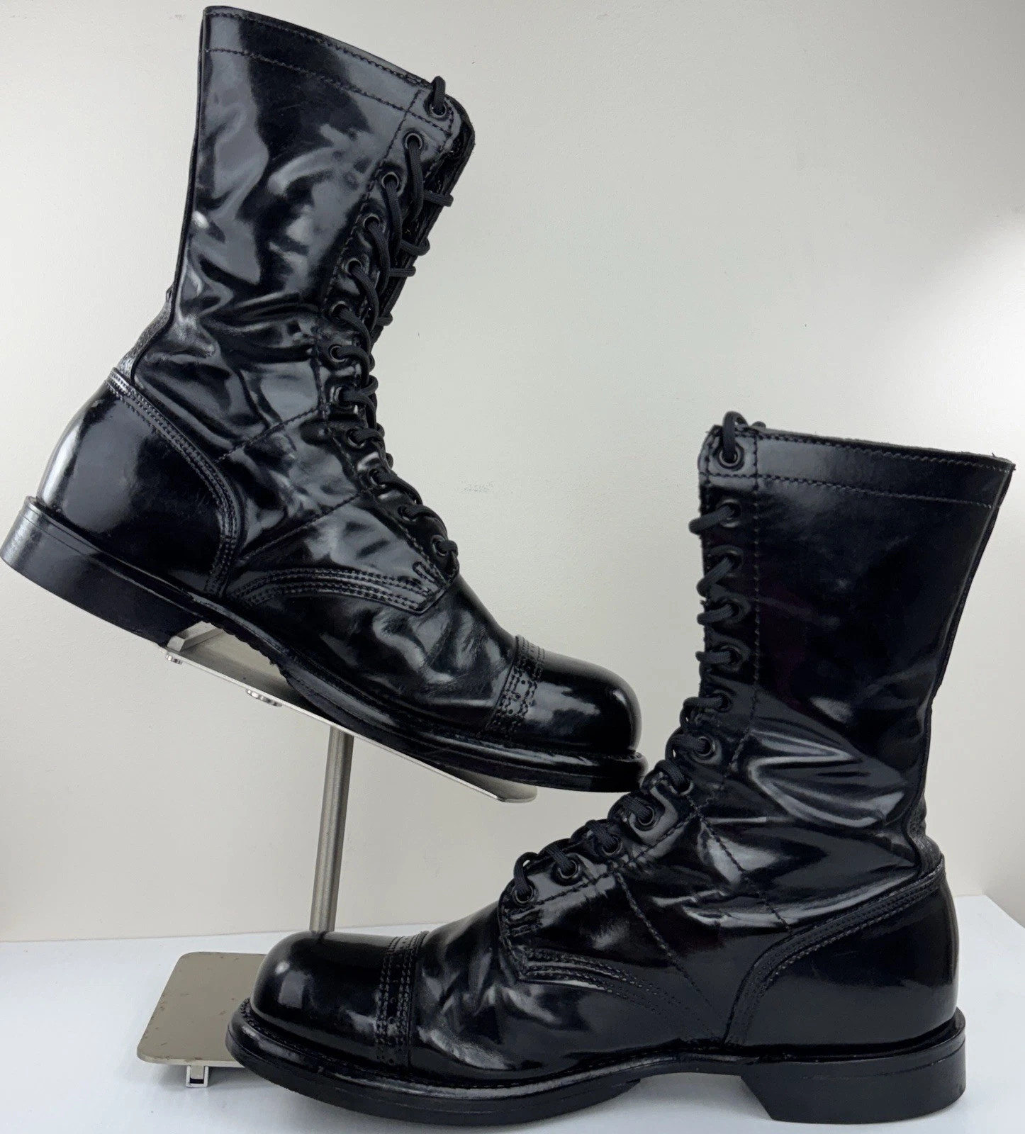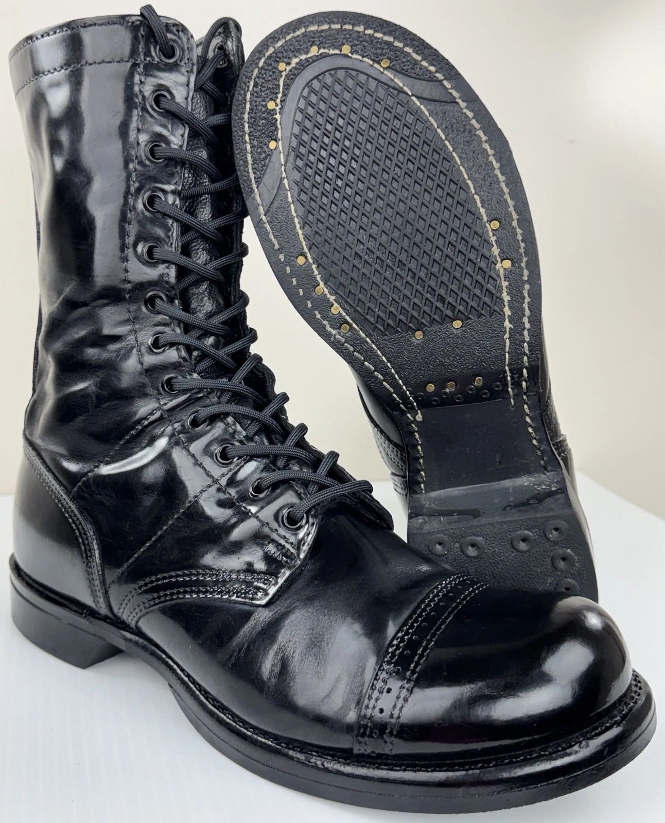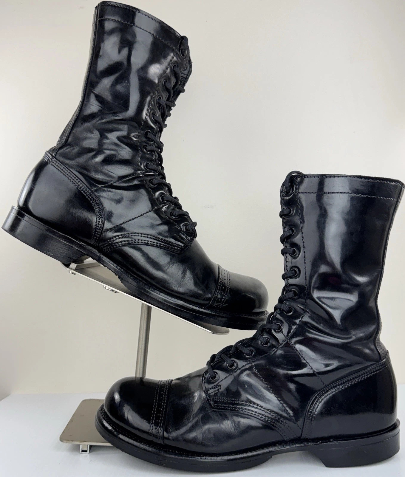 Condition: Good Used/Excellent Vintage condition; Shows signs of prior use including some natural creases around the ankles & vamp. The black leather is highly polished & retains a mirror-like finish with minor surface scuffs. The heel displays minor surface scuffing but no significant uneven wear on the soles. The original laces were replaced with USGI paracord laces. Please review photos for the exact condition of the item. What you see is what you get, so contact us if you have any questions or would like us to send more photos.