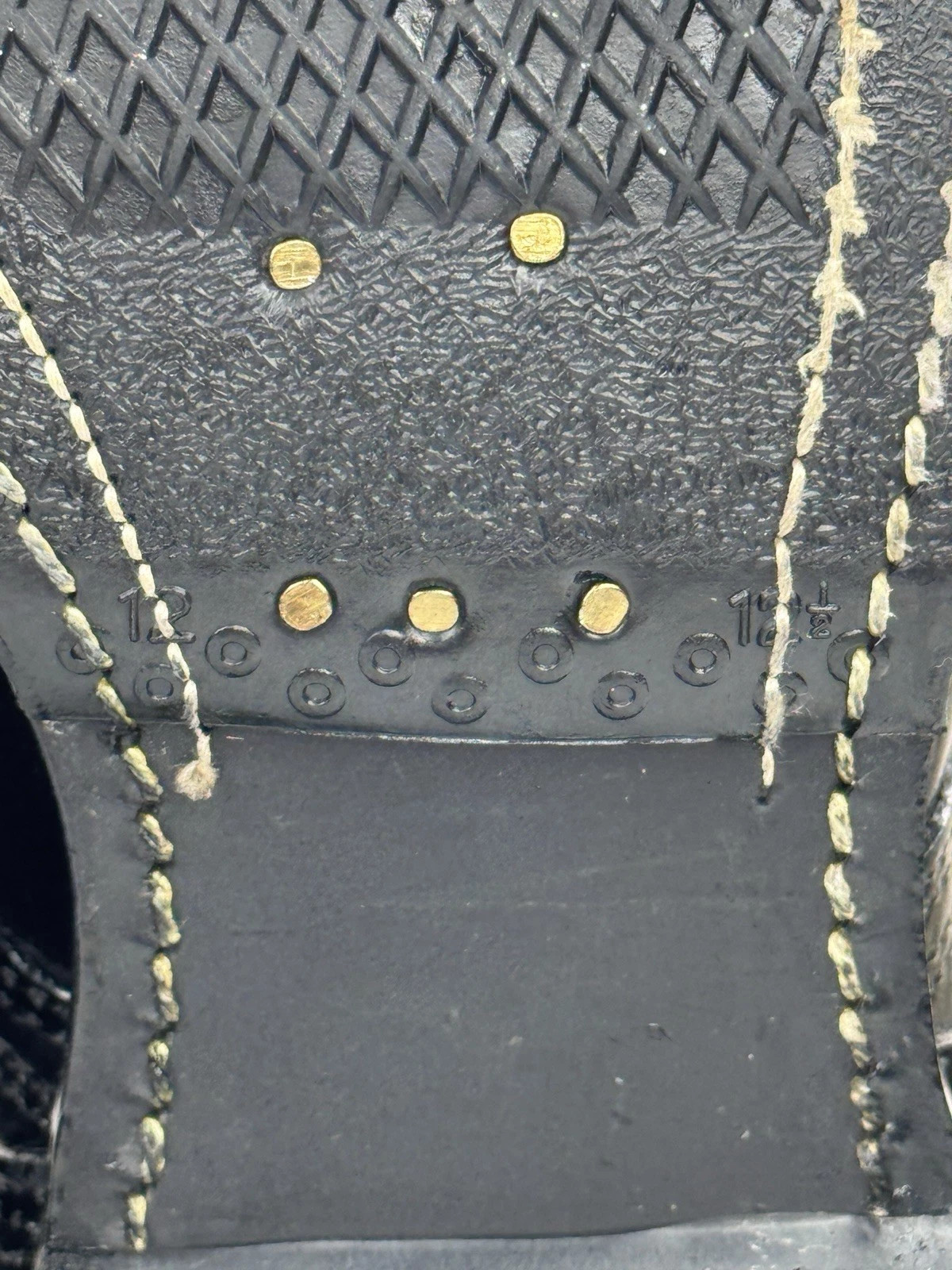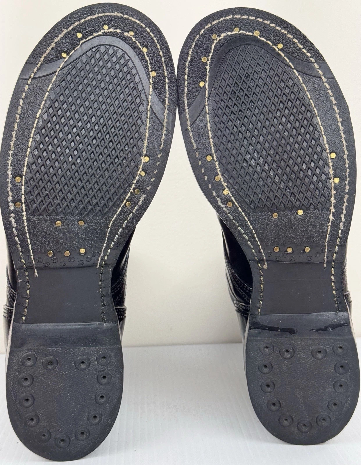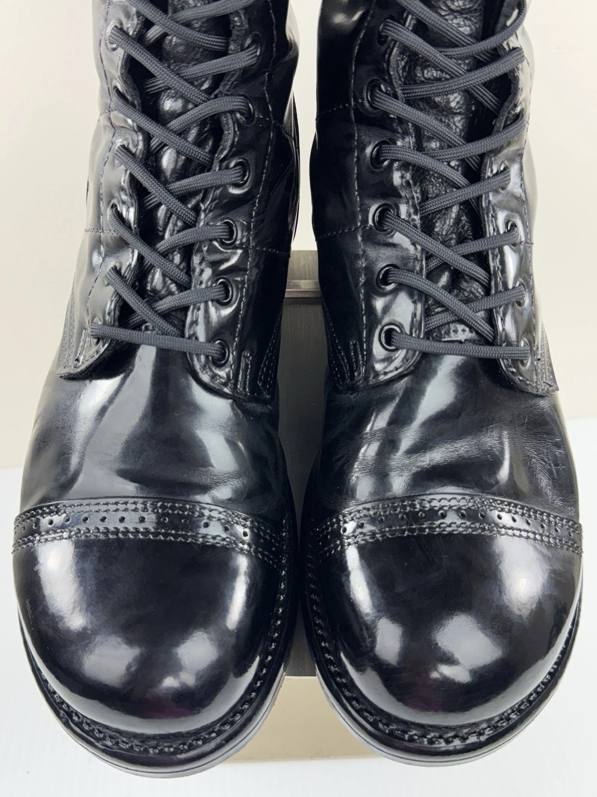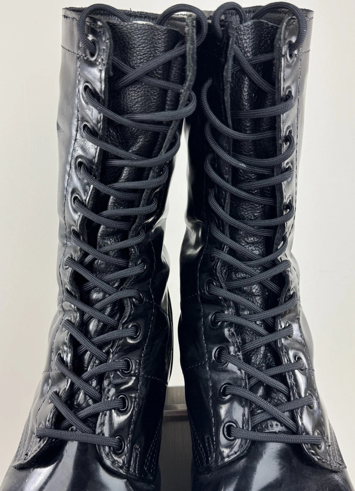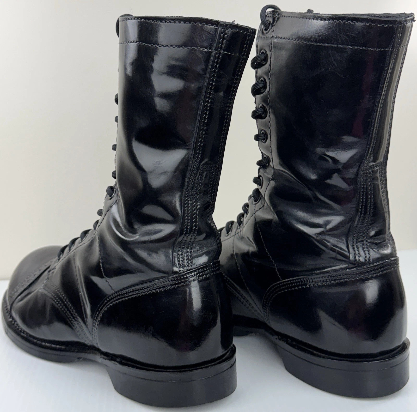 Condition: Good Used/Excellent Vintage condition; Shows signs of prior use including some natural creases around the ankles & vamp. The black leather is highly polished & retains a mirror-like finish with minor surface scuffs. The heel displays minor surface scuffing but no significant uneven wear on the soles. The original laces were replaced with USGI paracord laces. Please review photos for the exact condition of the item. What you see is what you get, so contact us if you have any questions or would like us to send more photos.