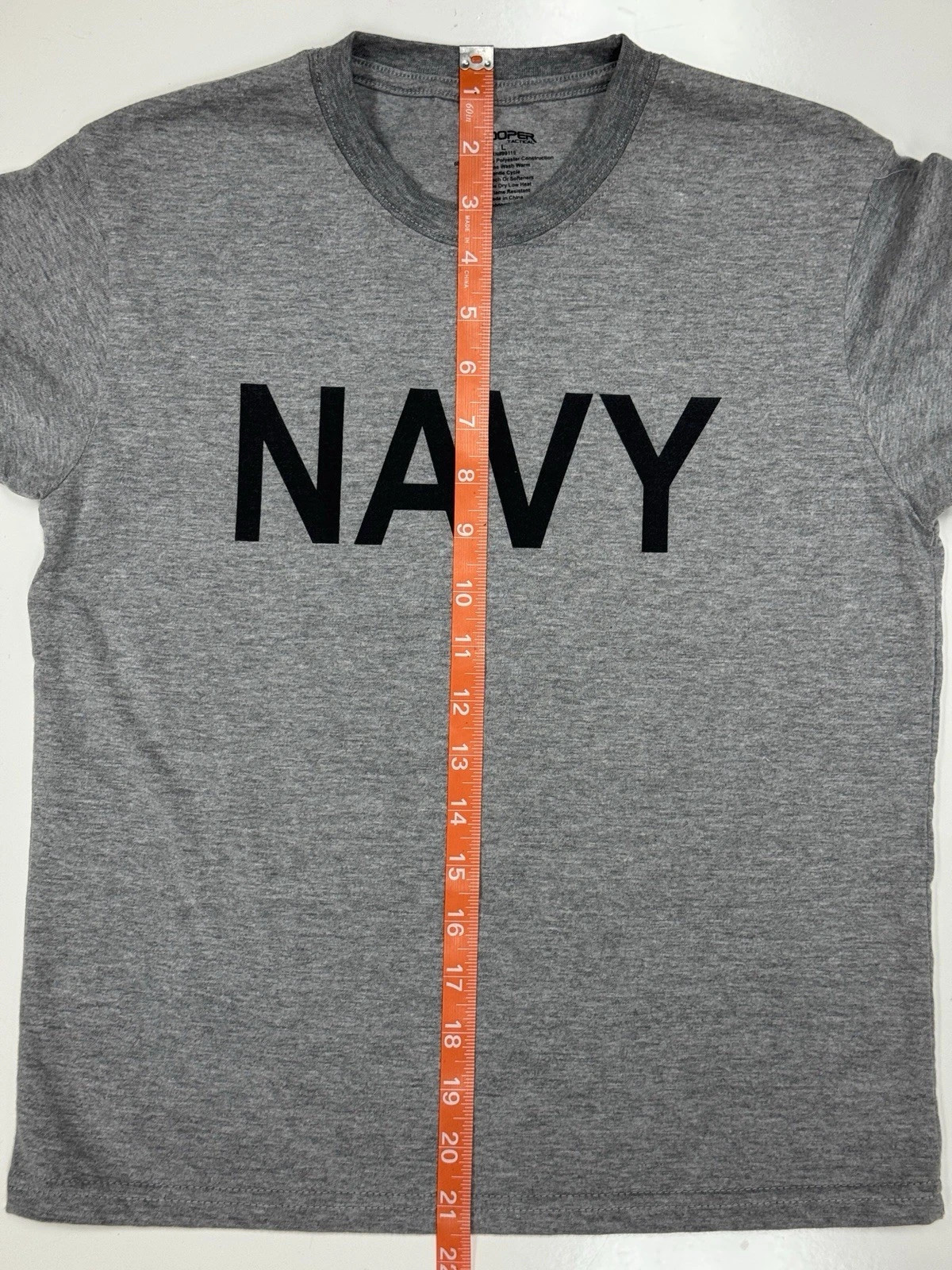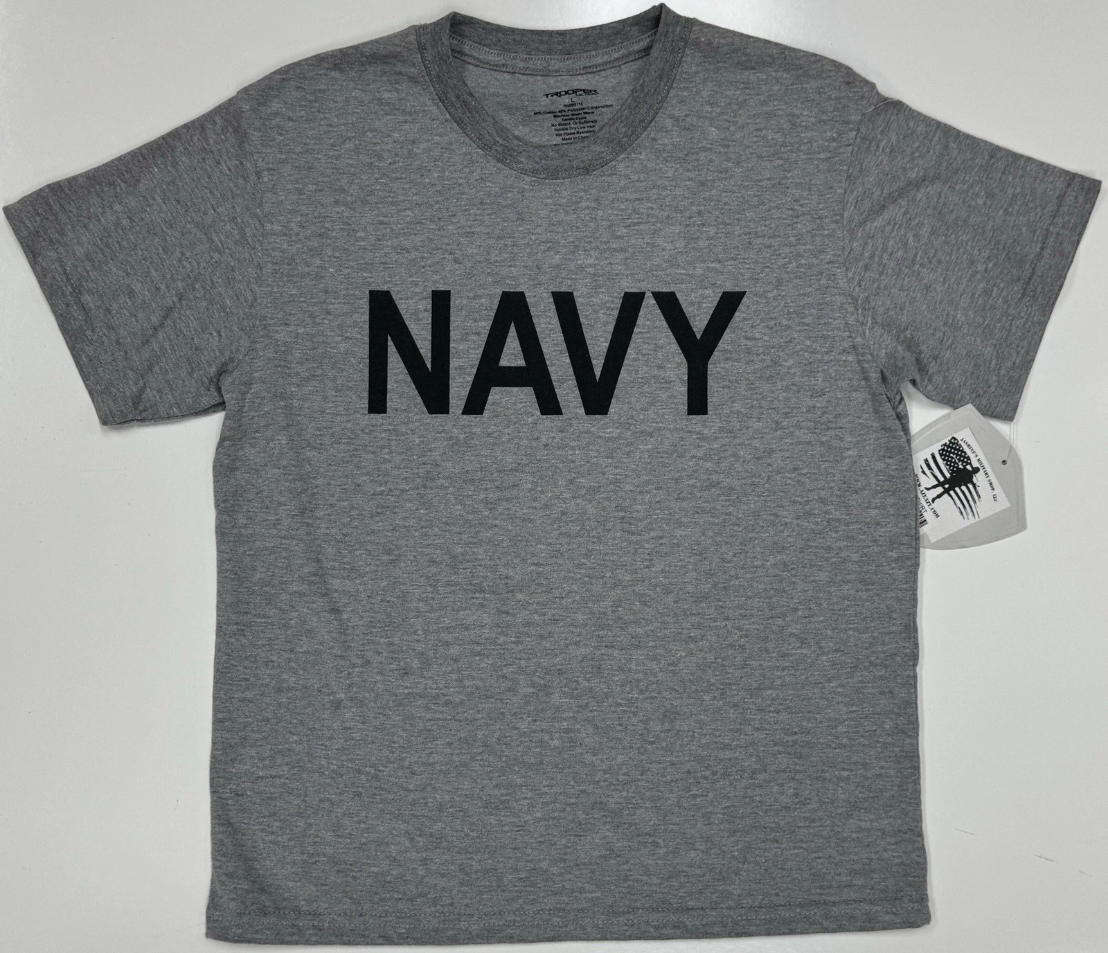 Color: Grey t-shirt with Black "NAVY" print on front
