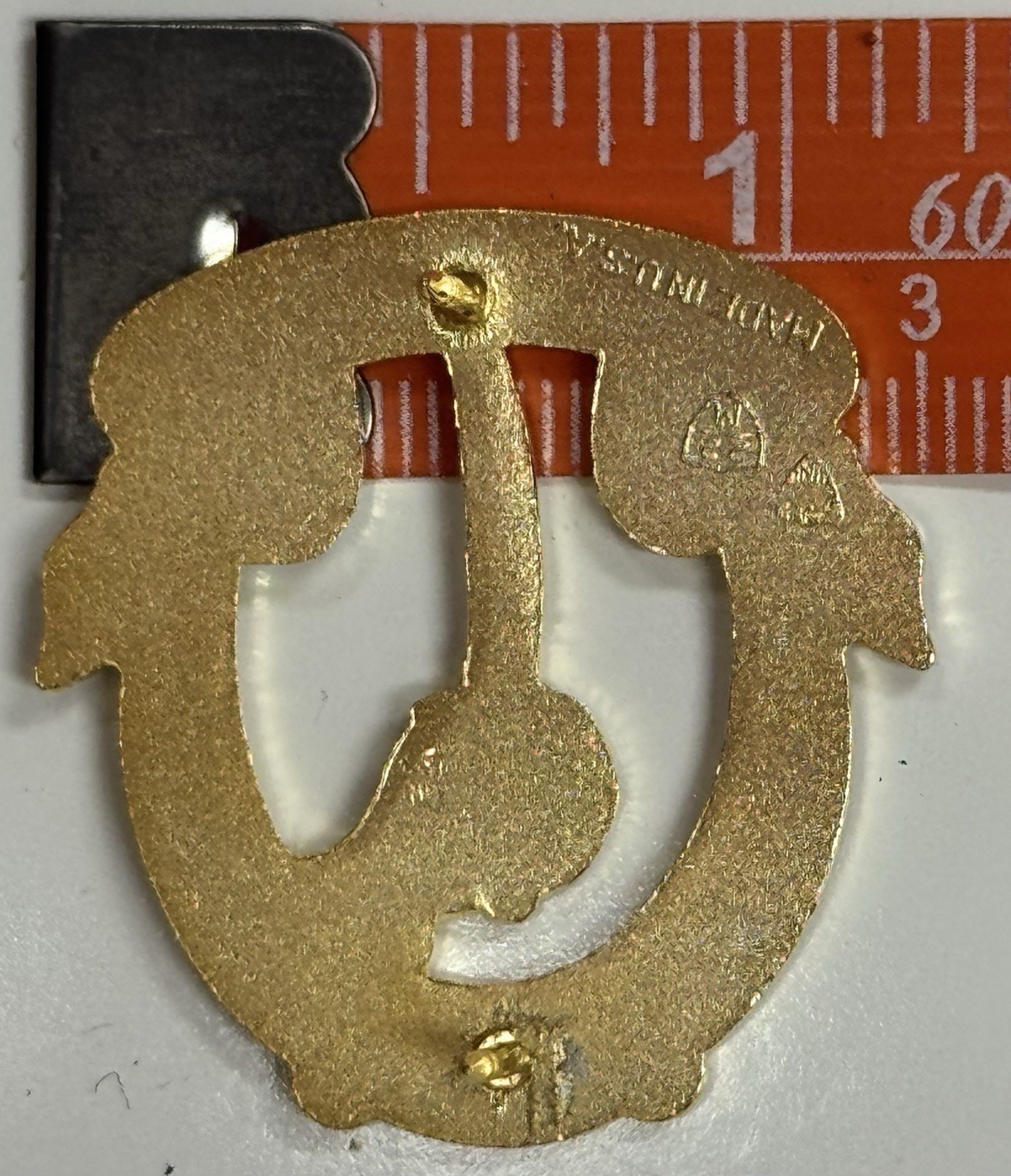 The horseshoe is adapted from the Regimental coat of arms. The 7 nail holes alluding to the unit's numerical designation.