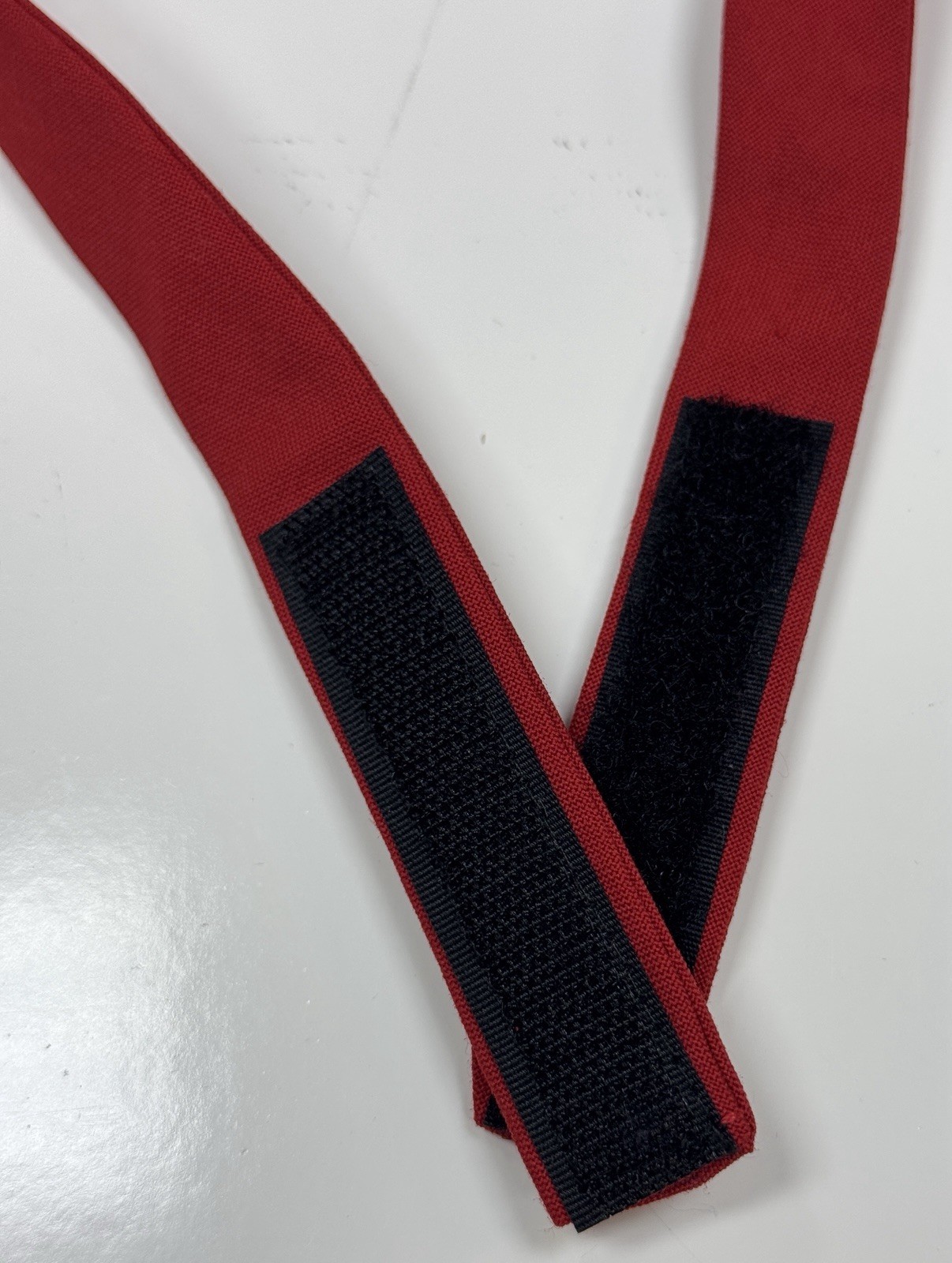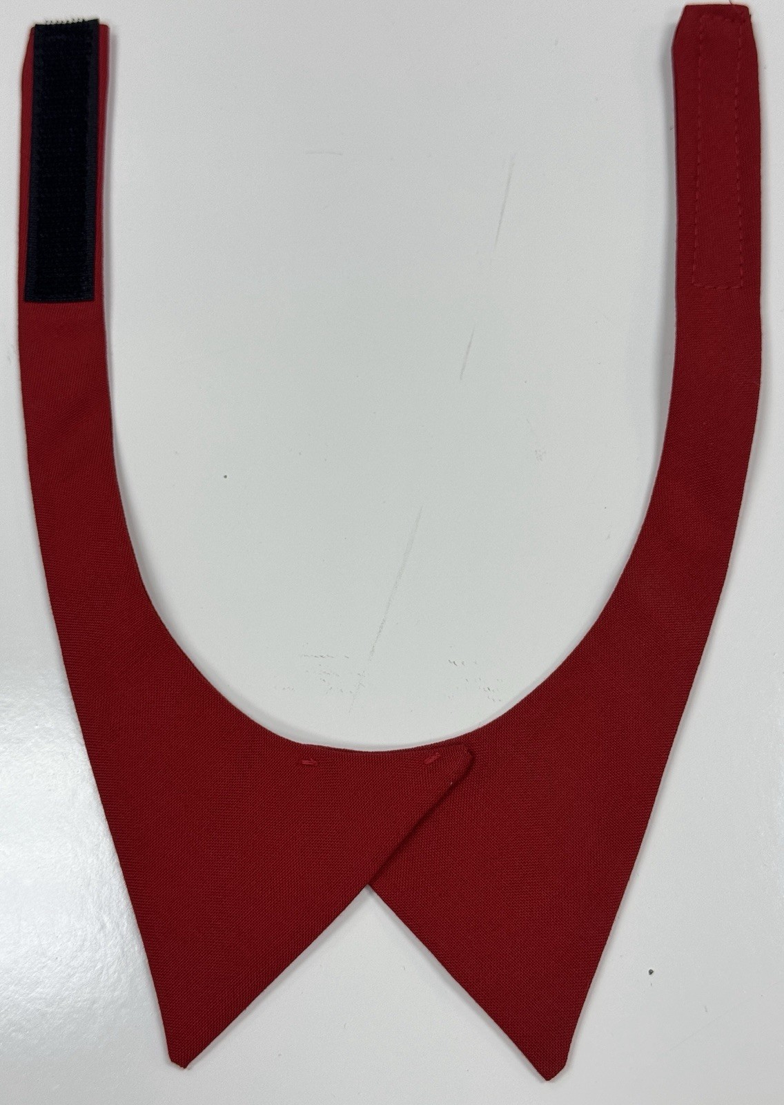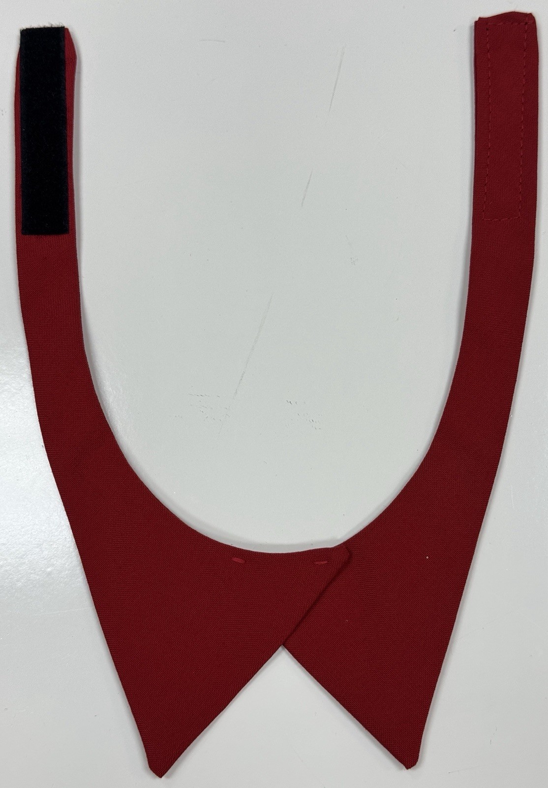 Crossover "neck tab" style with an adjustable neck strap that is secured with a hook & loop (Velcro) closure.