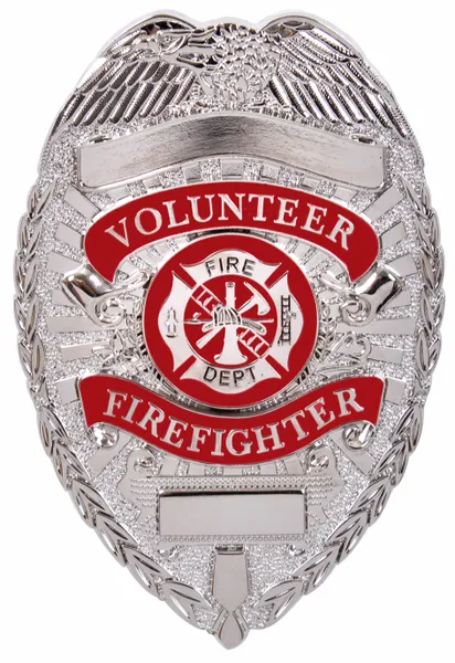 Rothco Deluxe Fire Department Badge, measuring 3 1/8" x 2 1/4", displays the text “Volunteer Firefighter” on a zinc alloy shield with your choice of silver or gold plating and has a durable pin backing which allows for easy mount and removal on uniforms or other gear.