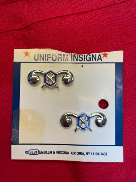 This pair of chemical corps insignia is an original USGI issued insignia, suitable for reenactors, collectors, or former officers in the US Army Chemical Corps.