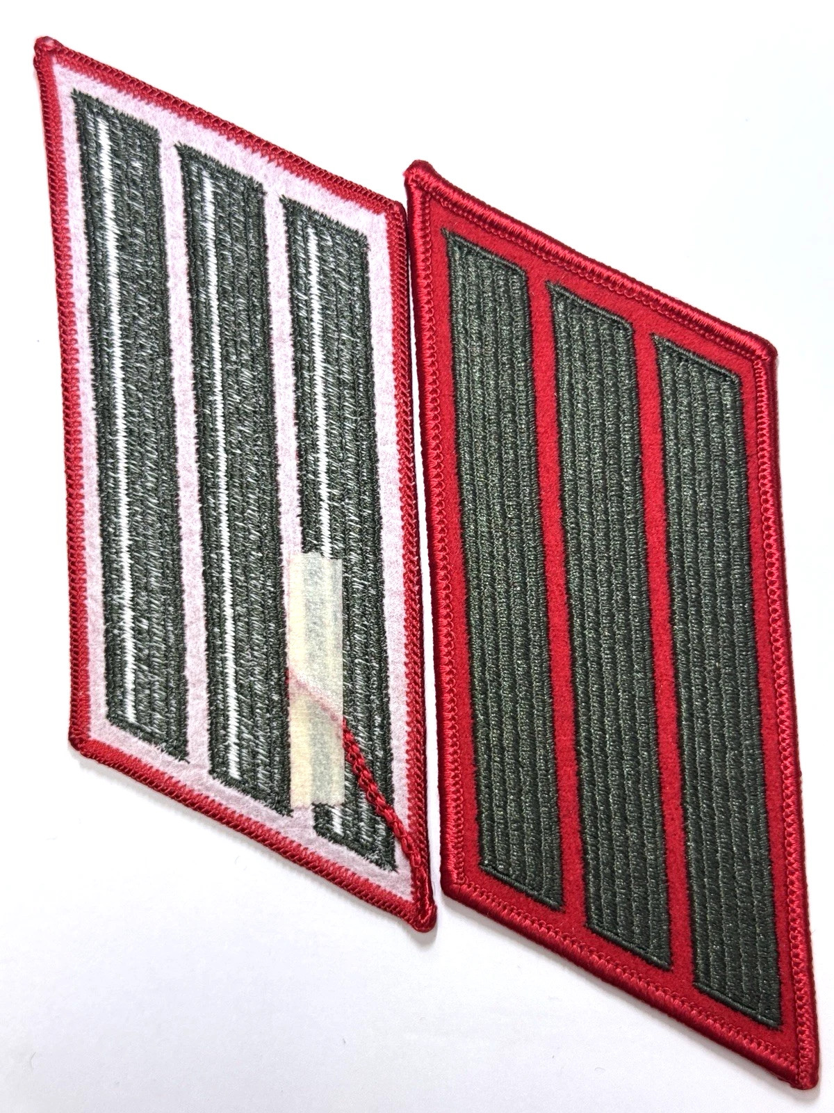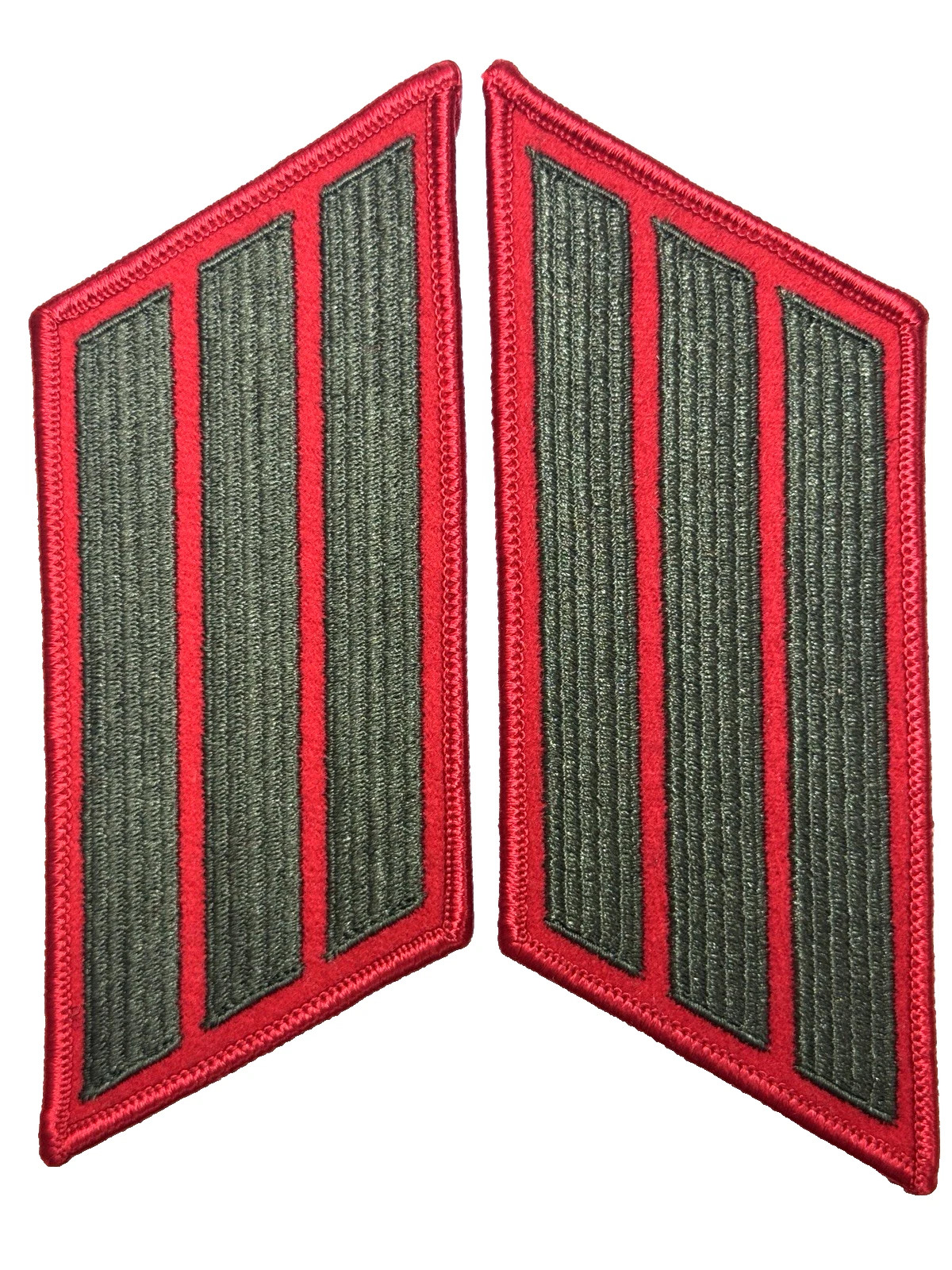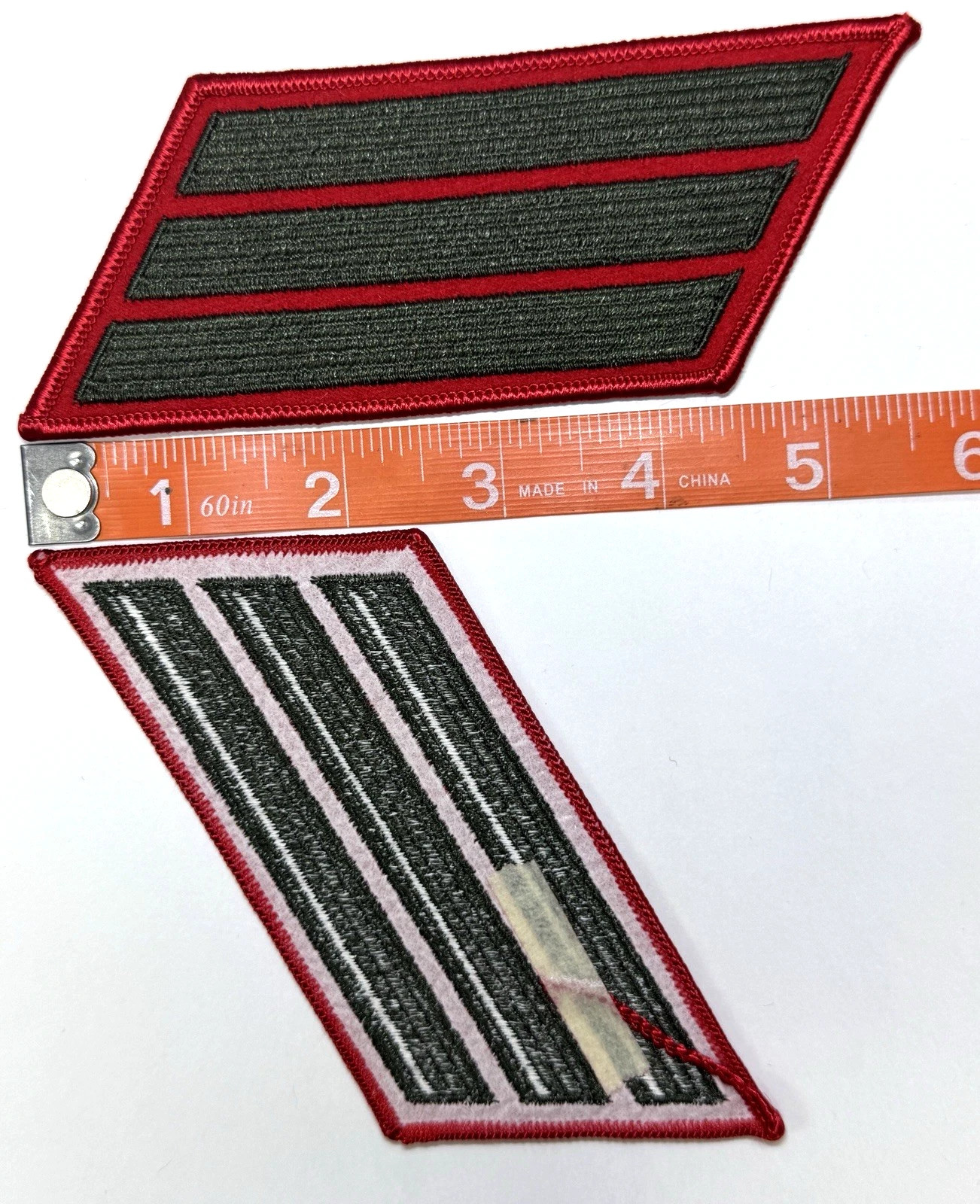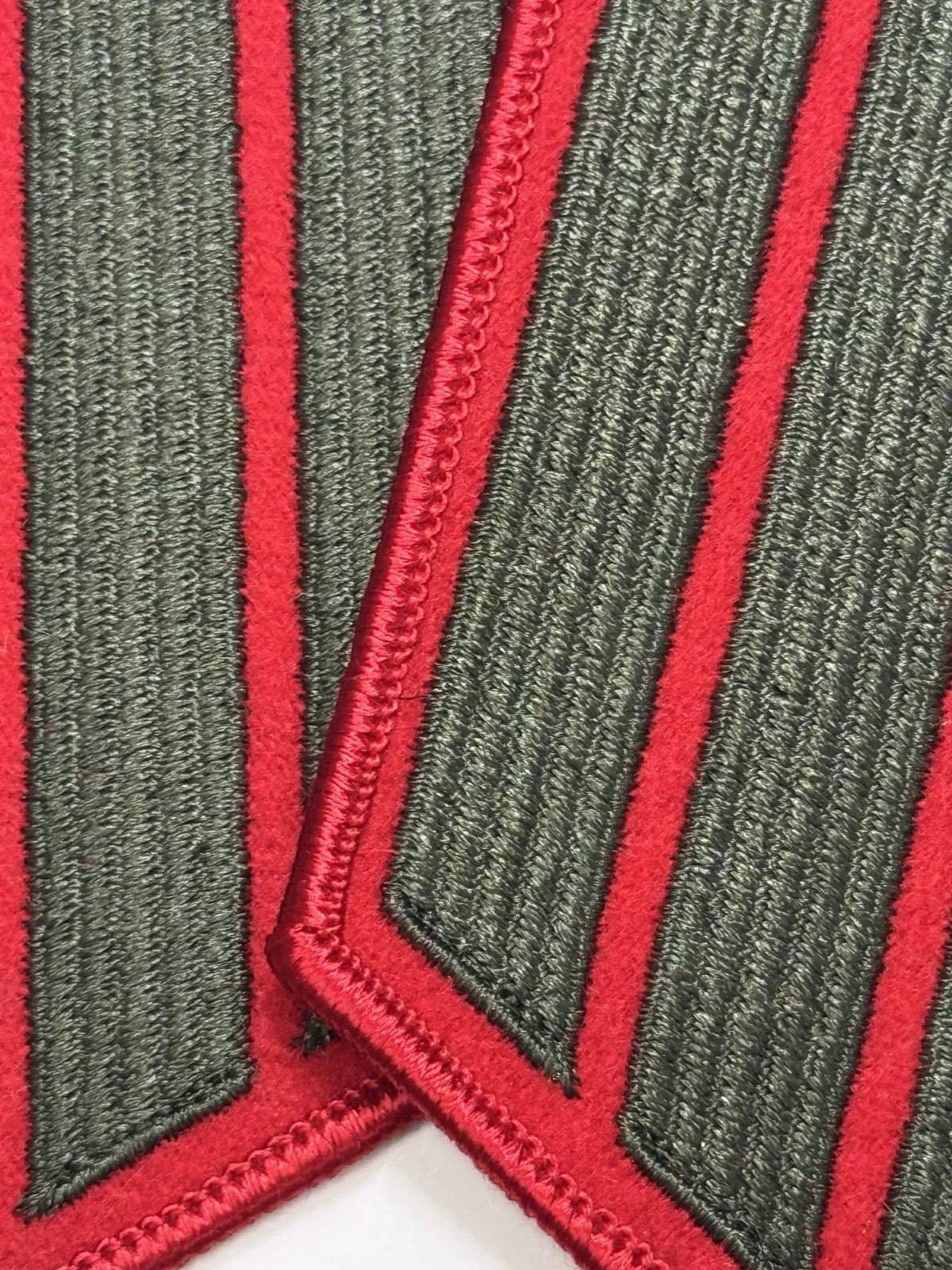 US Marine Corps Male Service Stripe - USMC 3-Stripes Green on Red, Pair, Patches