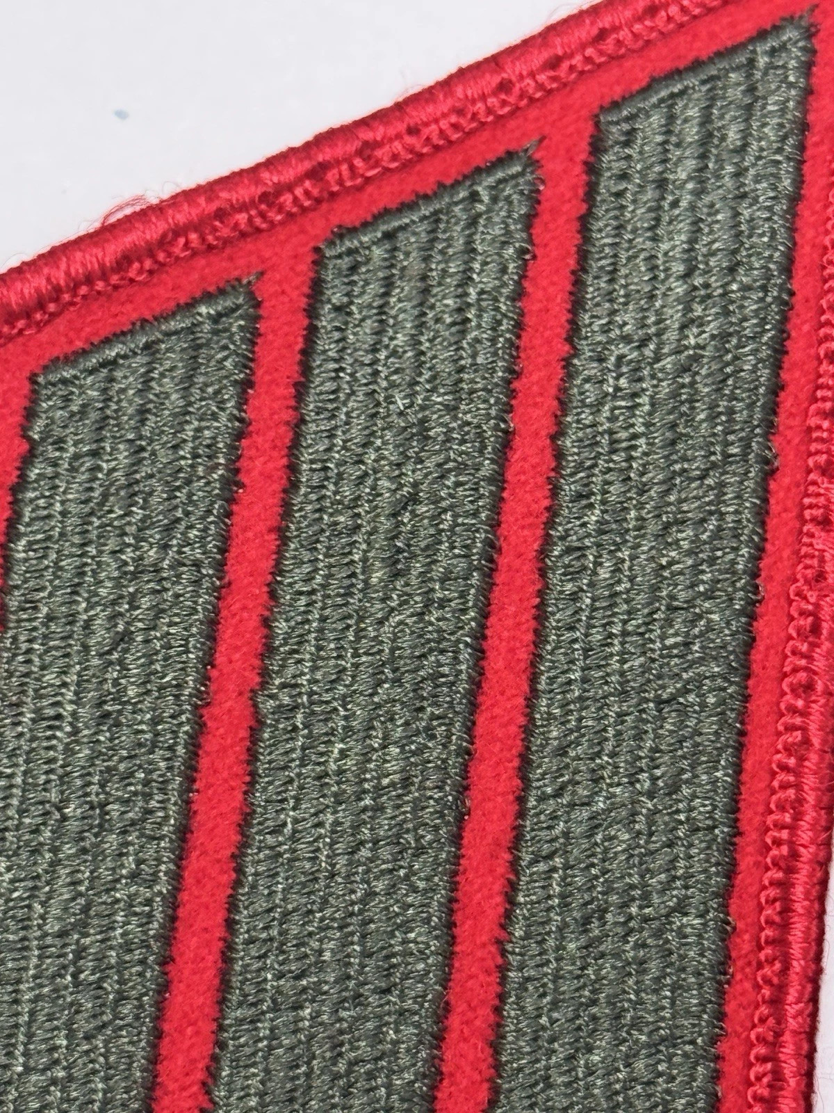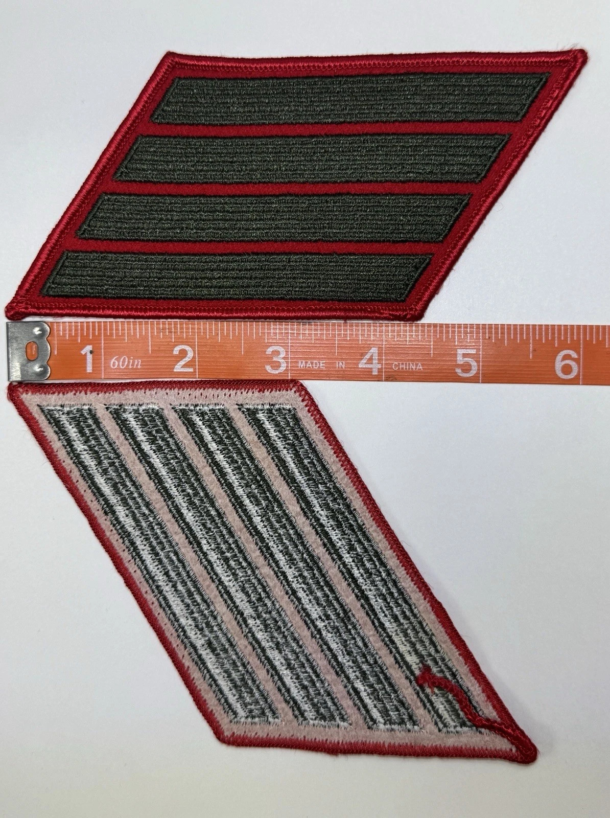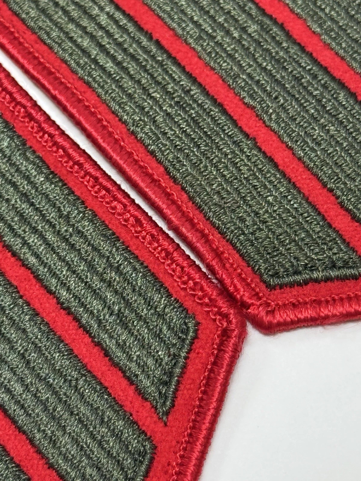 United States Marine Corps (USMC) service stripe green embroidered on red set of 4-stripe patches.