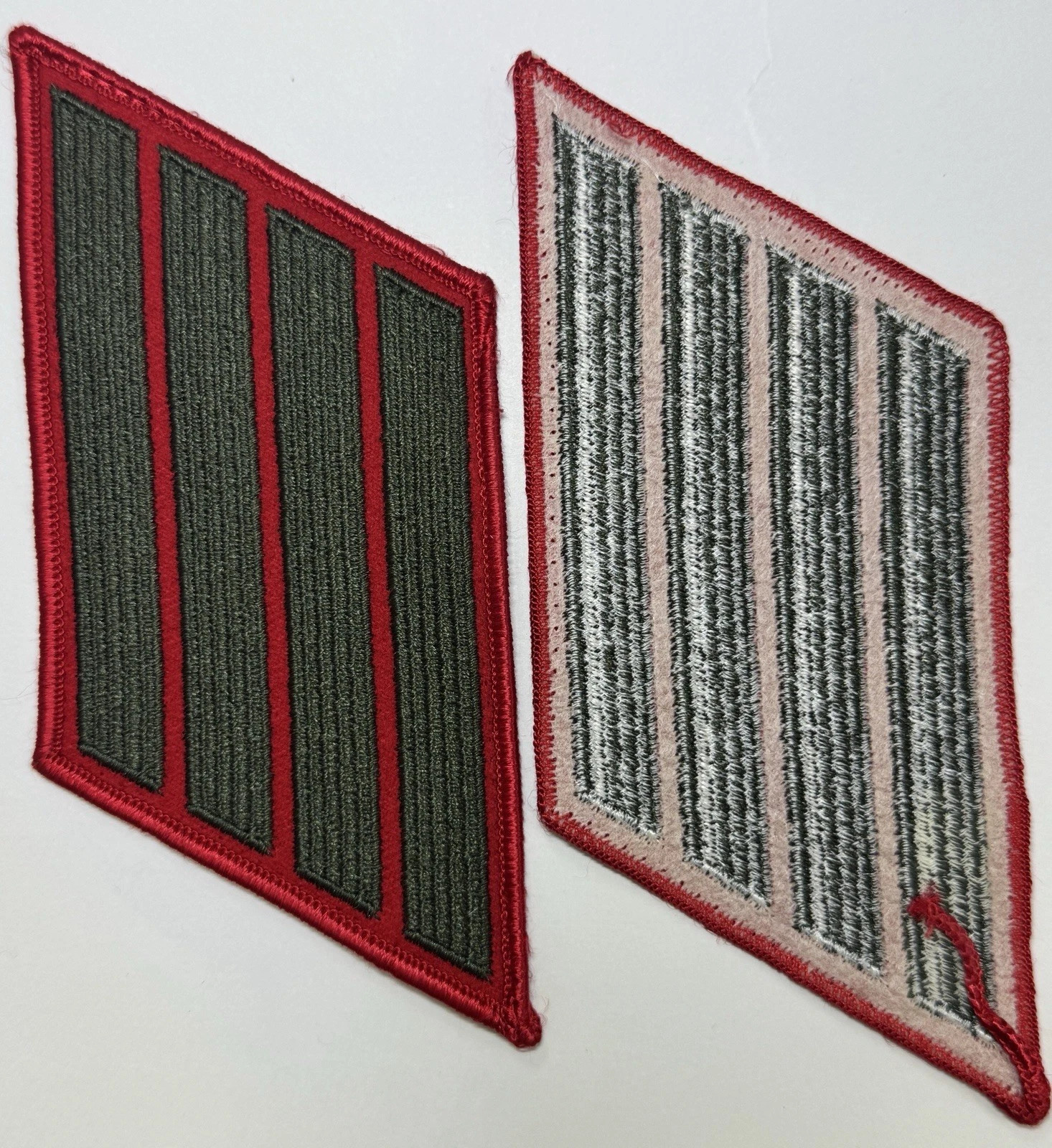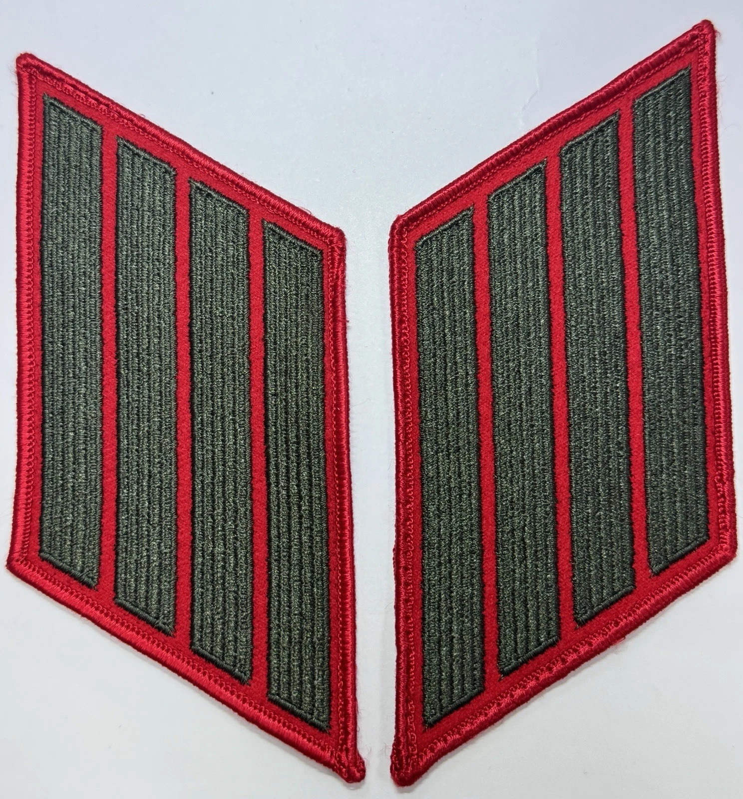 US Marine Corps Male Service Stripe - USMC 4-Stripes Green on Red, Pair, Patches
