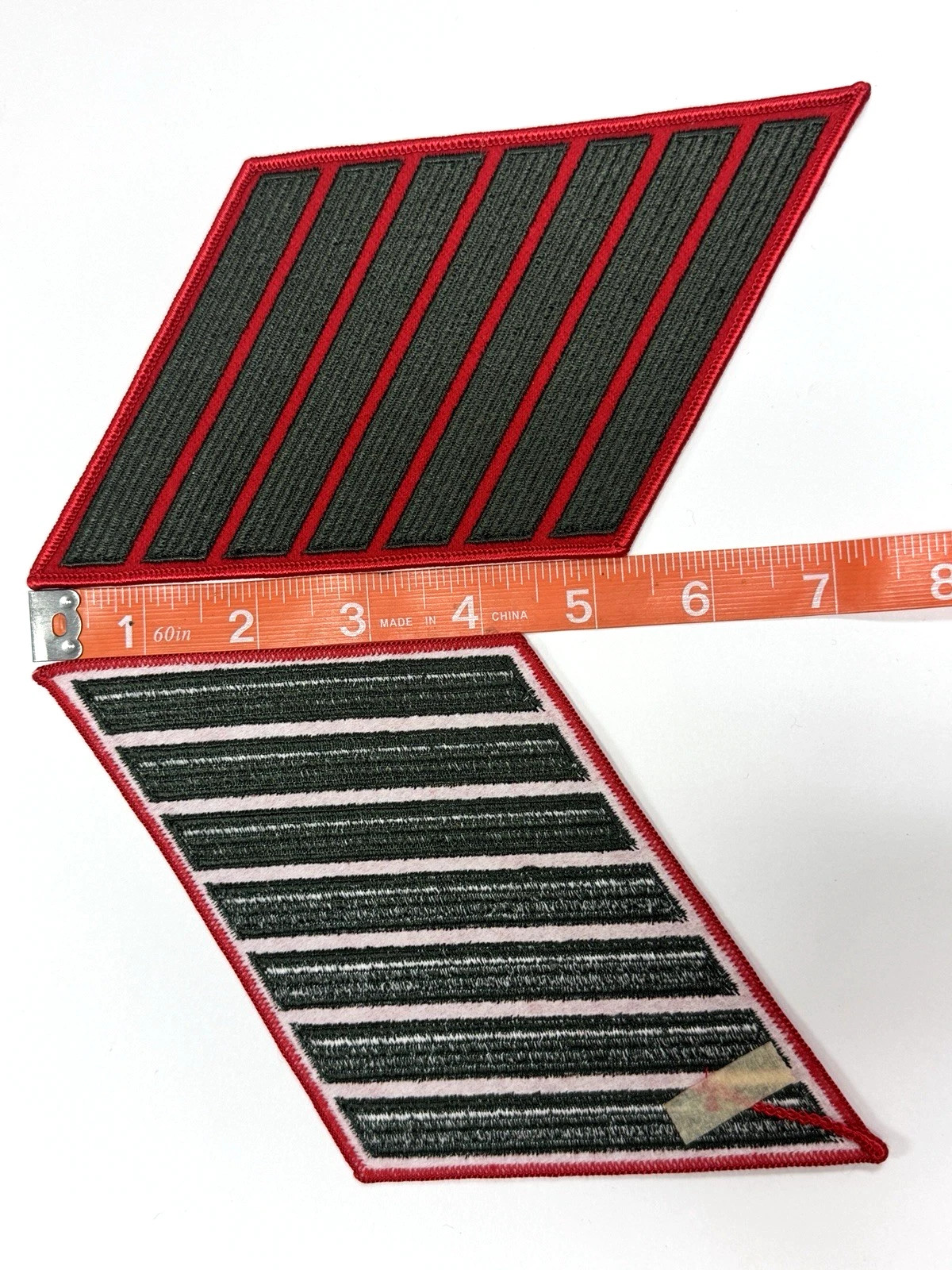 United States Marine Corps (USMC) service stripe green embroidered on red set of 7-Stripe service patches.