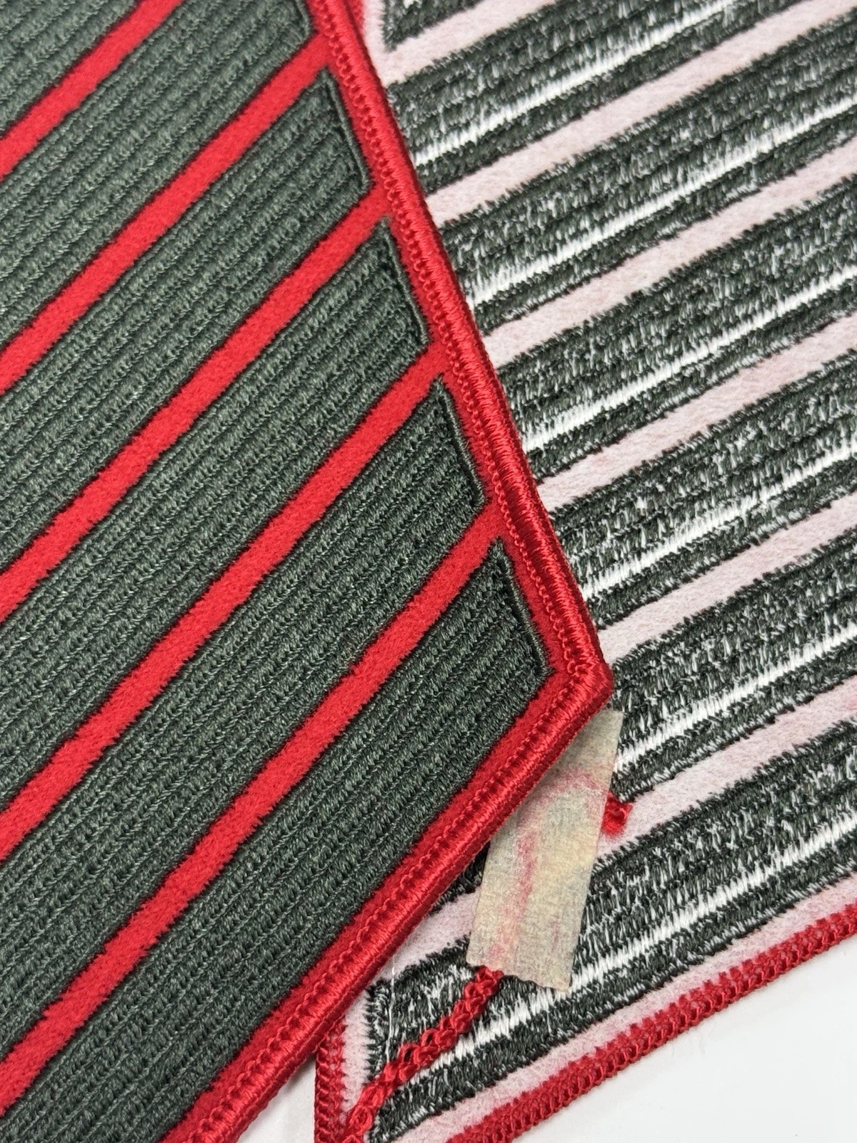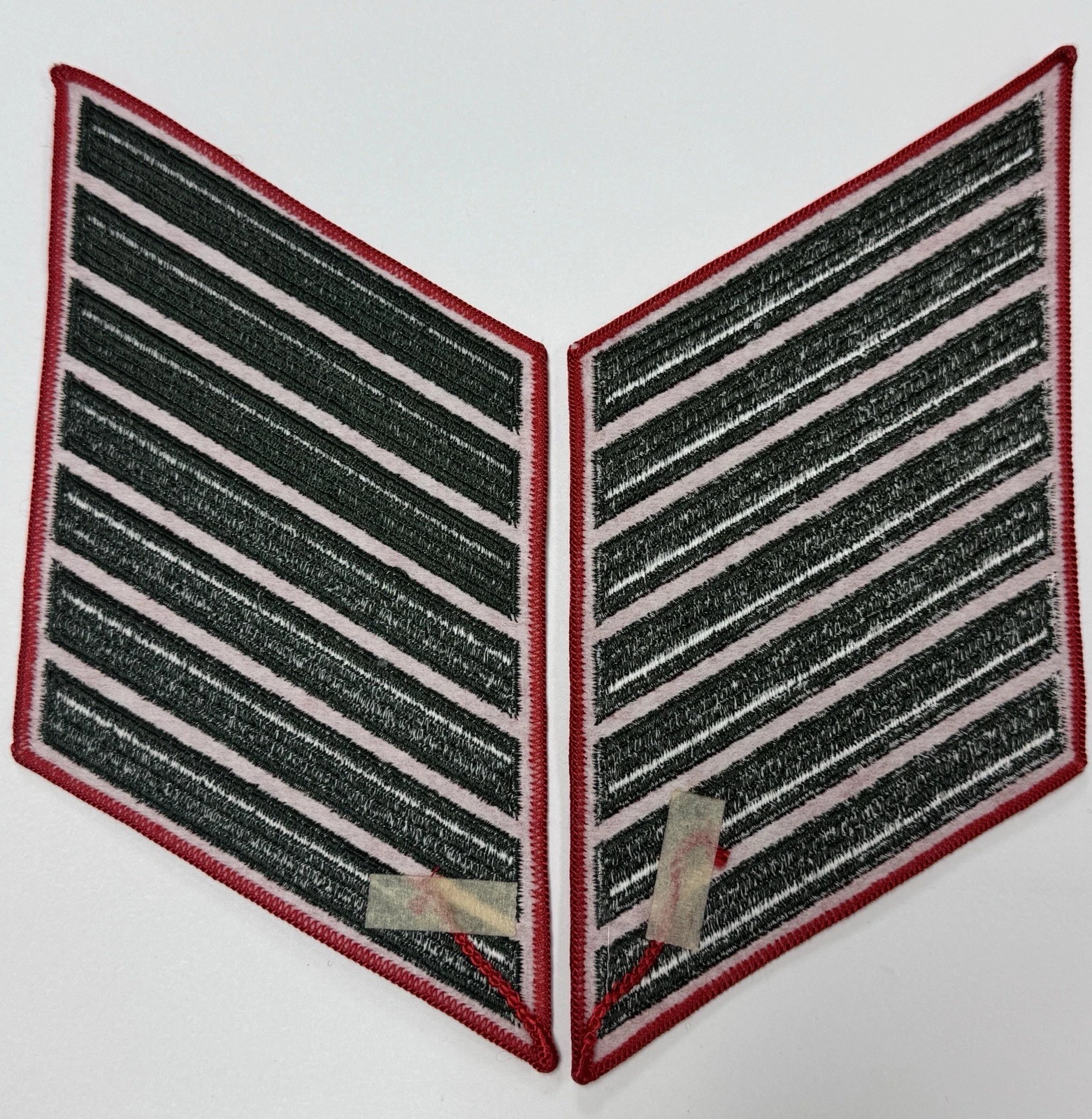 US Marine Corps Male Service Stripe - USMC 7-Stripes Green on Red, Pair, Patches