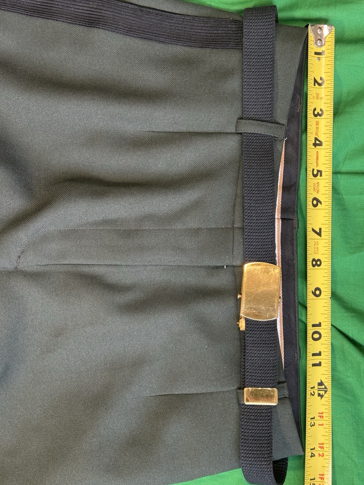 Condition: Excellent Used; shows mild prior use; Jacket & Shirt shows tiny pinholes where ribbon/medals were attached. Pants have been hemmed to 29.5" inseam, but have approximately 3" available seam allowance. Brass Buckle has a few surface scratches. Would recommend cleaning uniform prior to use. Please view all the photos on the listing. Contact us if you have any questions or would like us to send more photos.