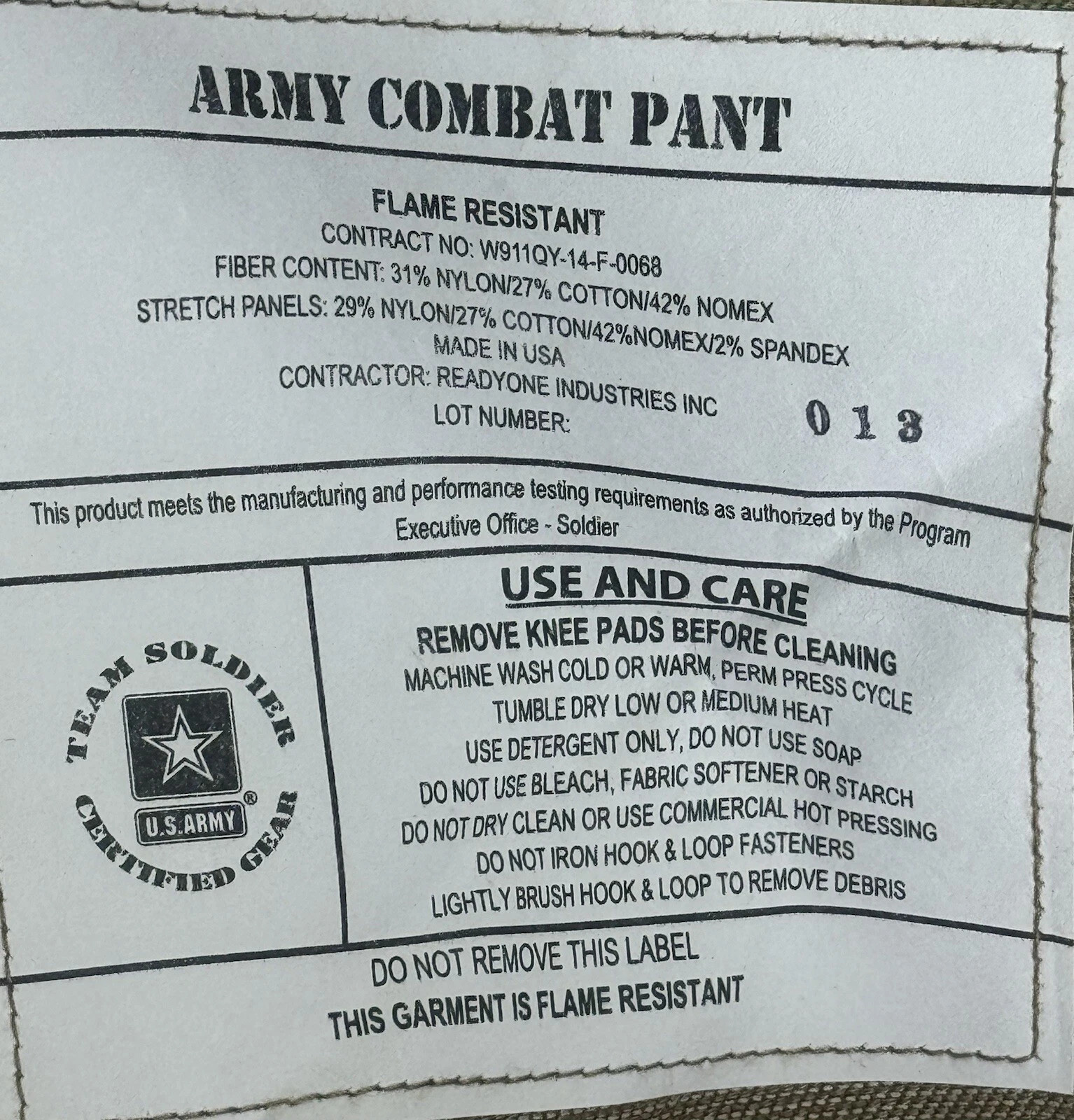 These are the US Army Multicam Combat Pants. Pants are made from flame resistant material and accept the Crye Precision Knee Pads (not included). Pants have Performance designed gusset for improved range of motion, Reinforced seat, and Horizontal knee pad adjustment for personalized fit.