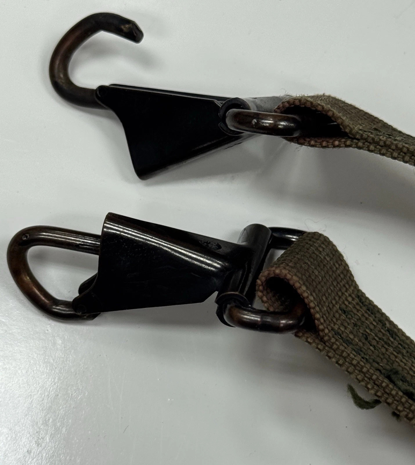 Condition:Excellent based on the age, just some minimal discolorations. Fabric shows some minor fading and light surface soiling. The metal hardware shows light surface wear and minor oxidation but appears structurally sound without significant rust or deep pitting. No stock photos used. Please review photos for the exact condition of the item.