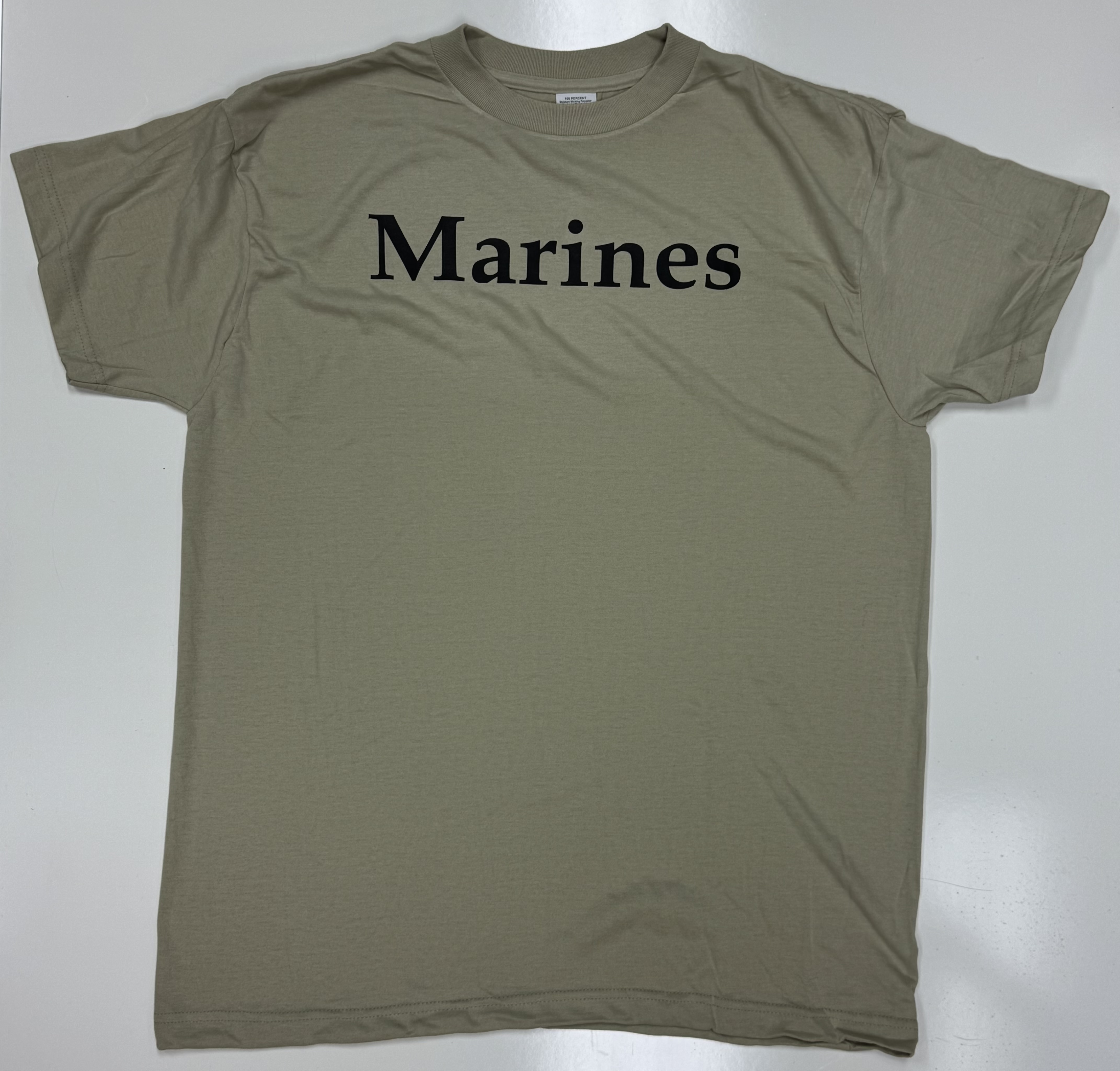 USMC Tan T-Shirt w/Black "Marines" Letters | Large | NEW