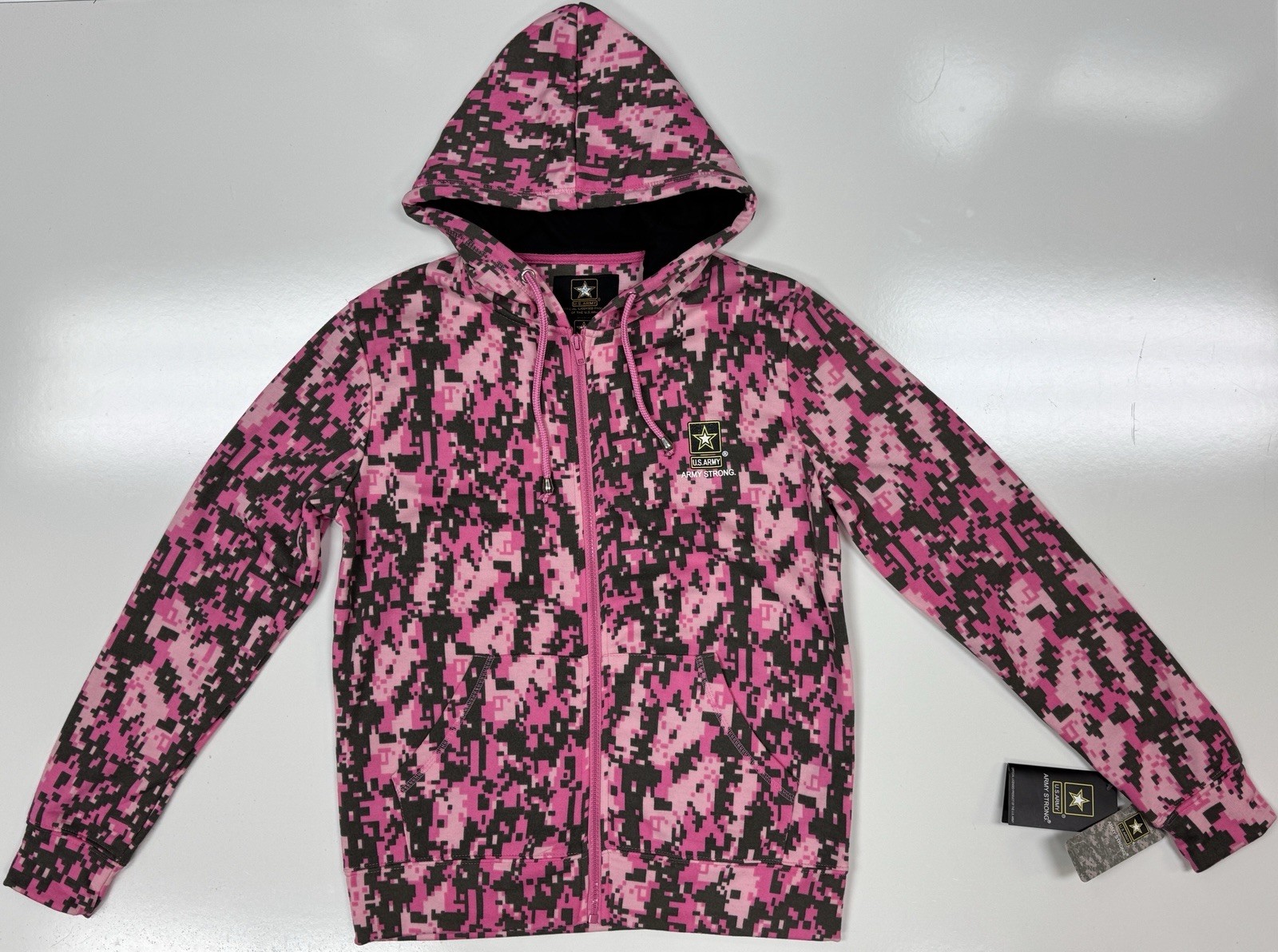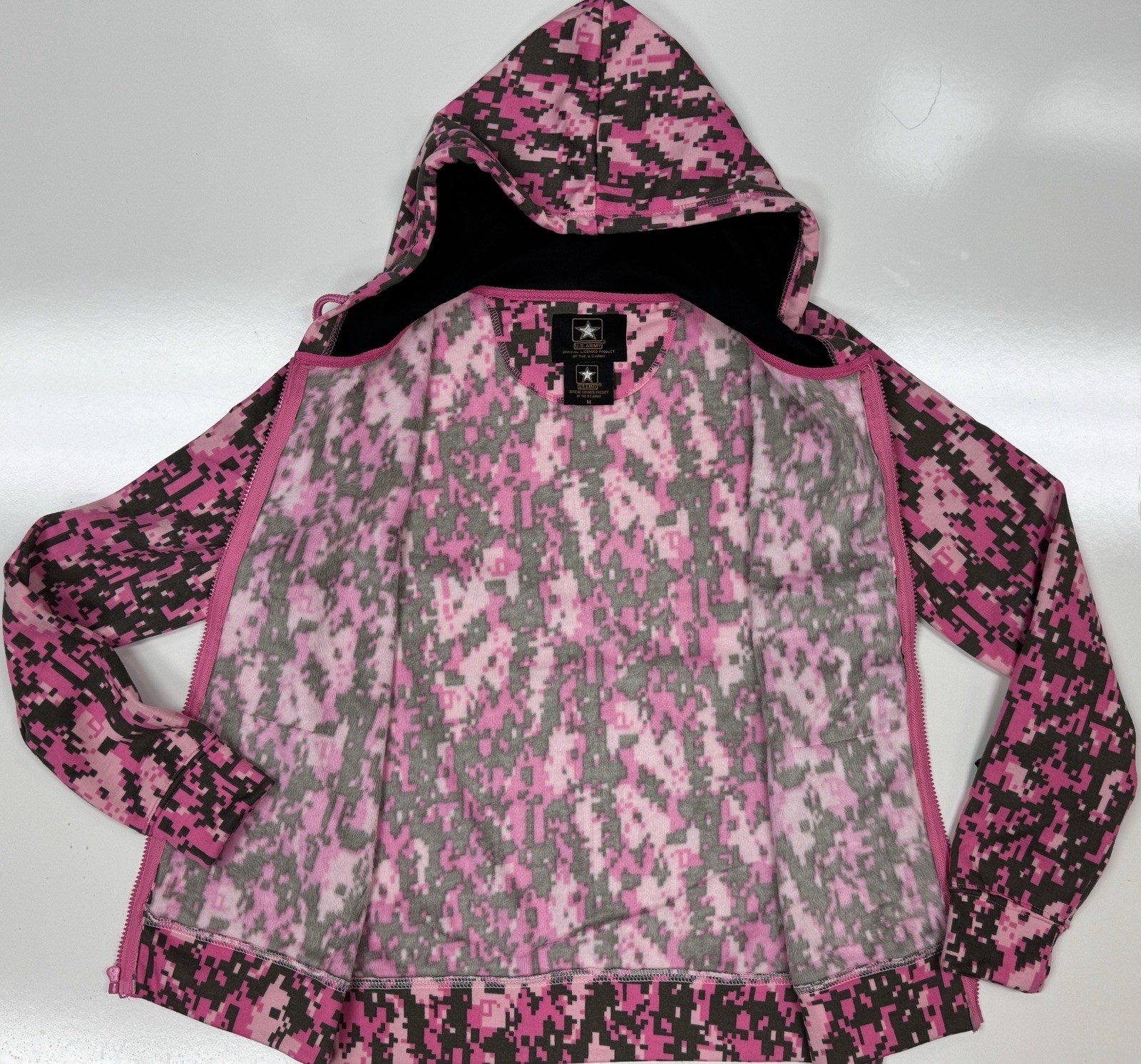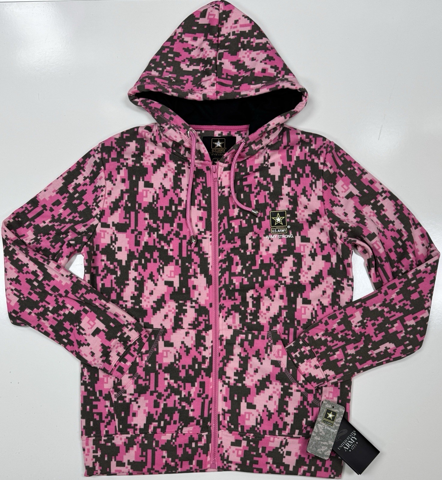 Women's Army Pink Digital Camo Hoodie with Zipper & Black Accents